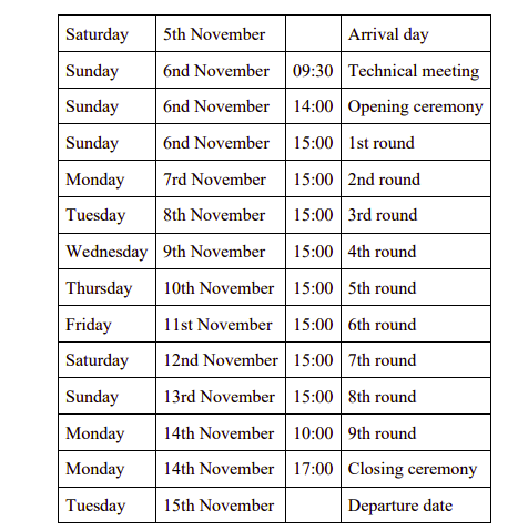 European Youth Chess Championship 2022 – Schedule: